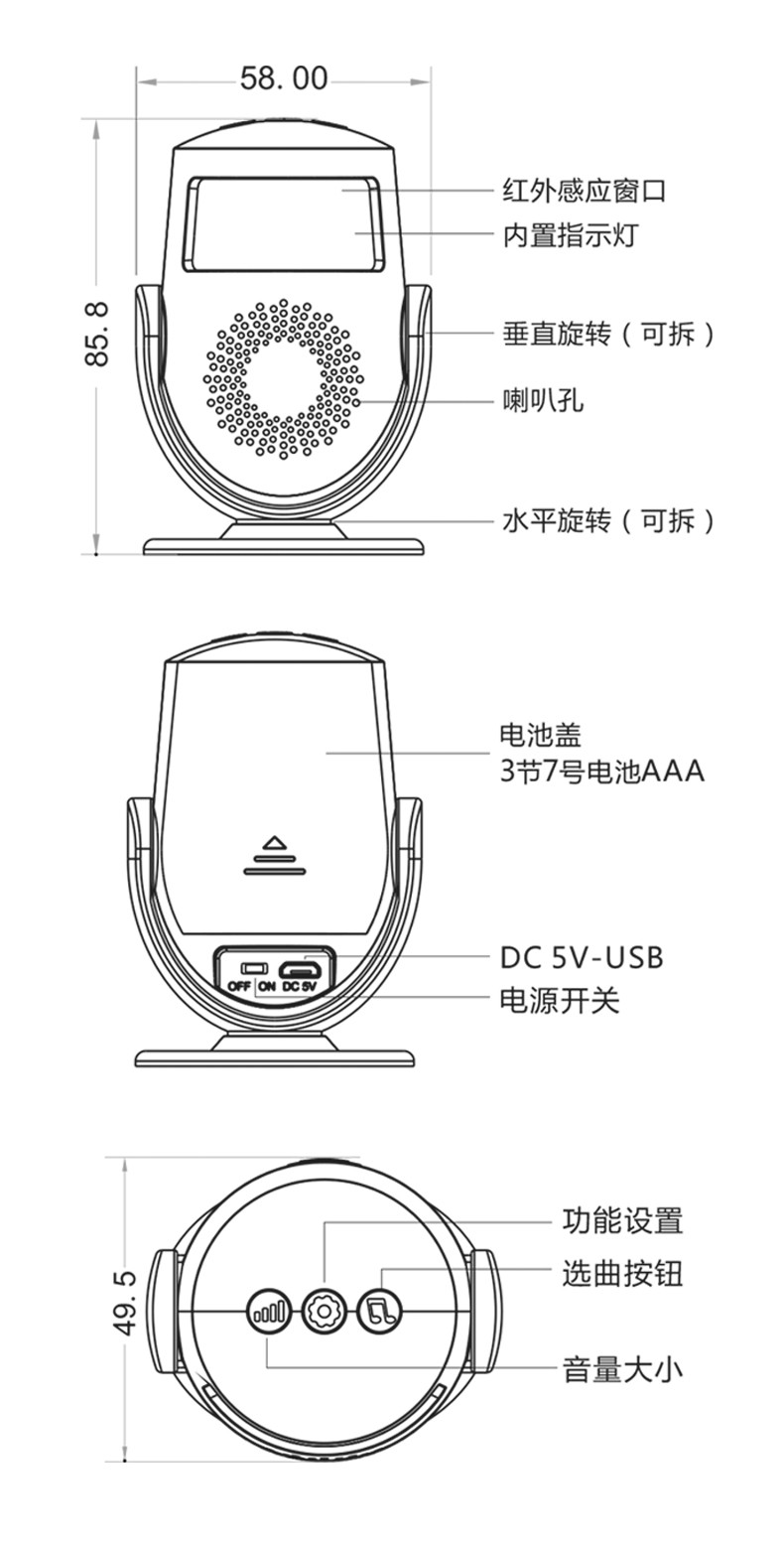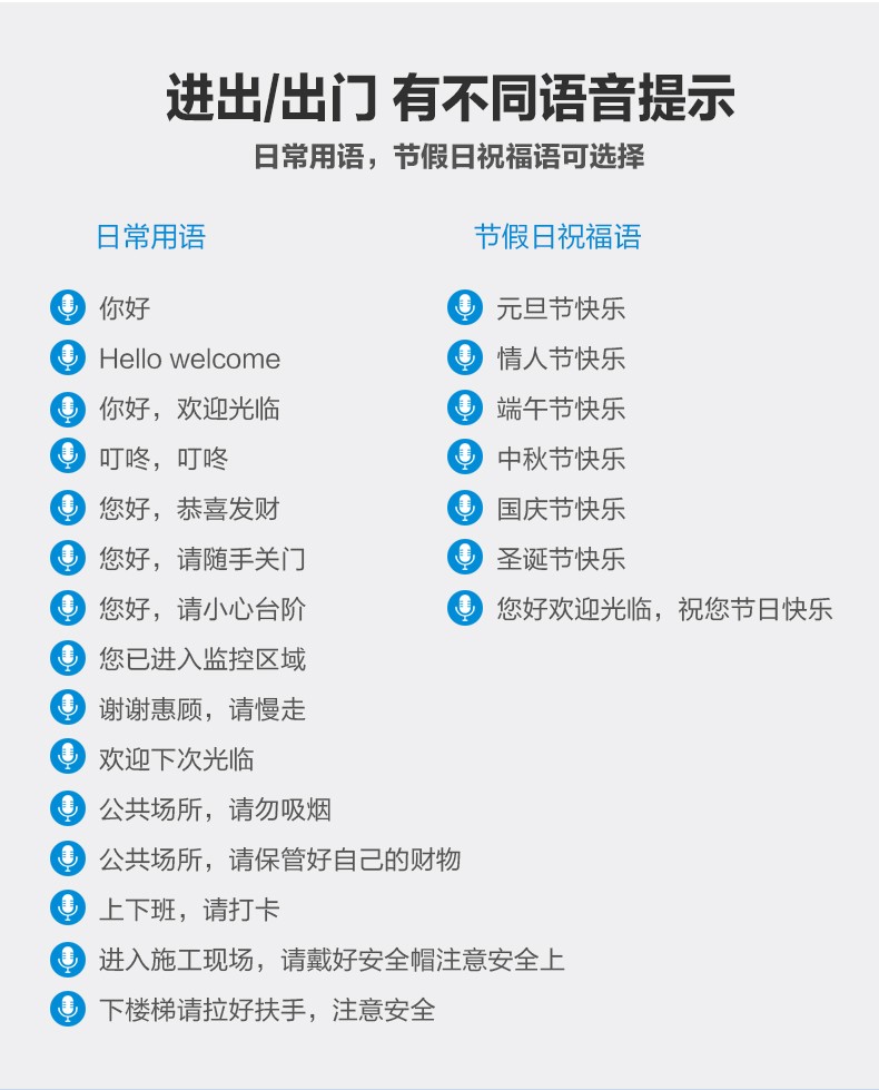 白天迎賓,夜晚防盜(多種模式,隨意切換);