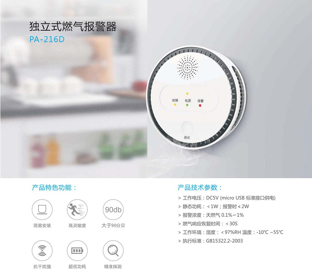 獨(dú)立式燃?xì)鈭?bào)警器 (型號(hào)PA-216D)