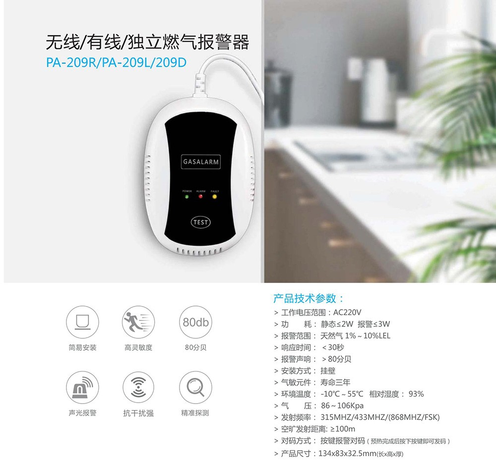 家用無線燃?xì)鈭?bào)警器 (型號(hào)PA-209)