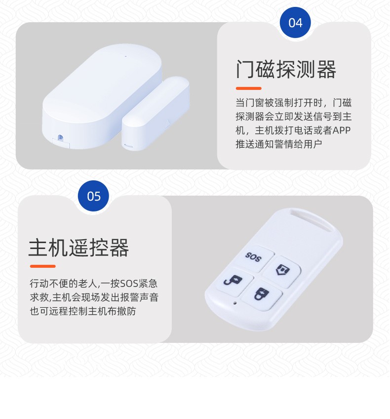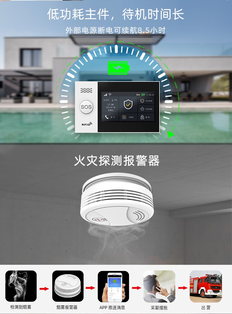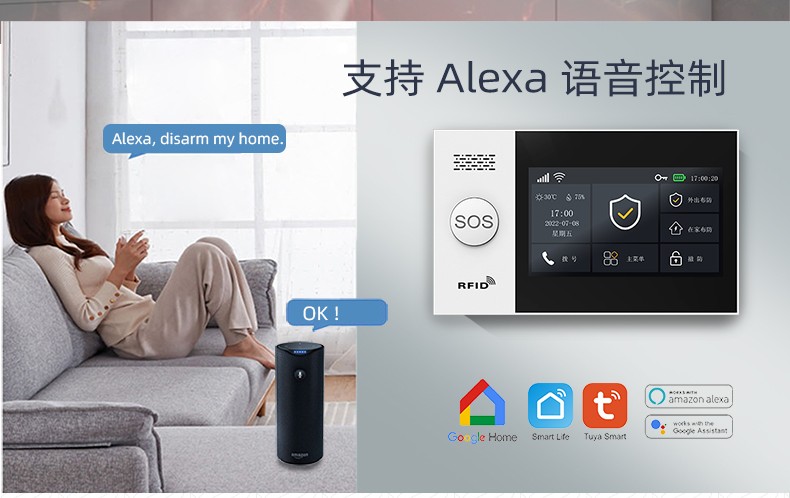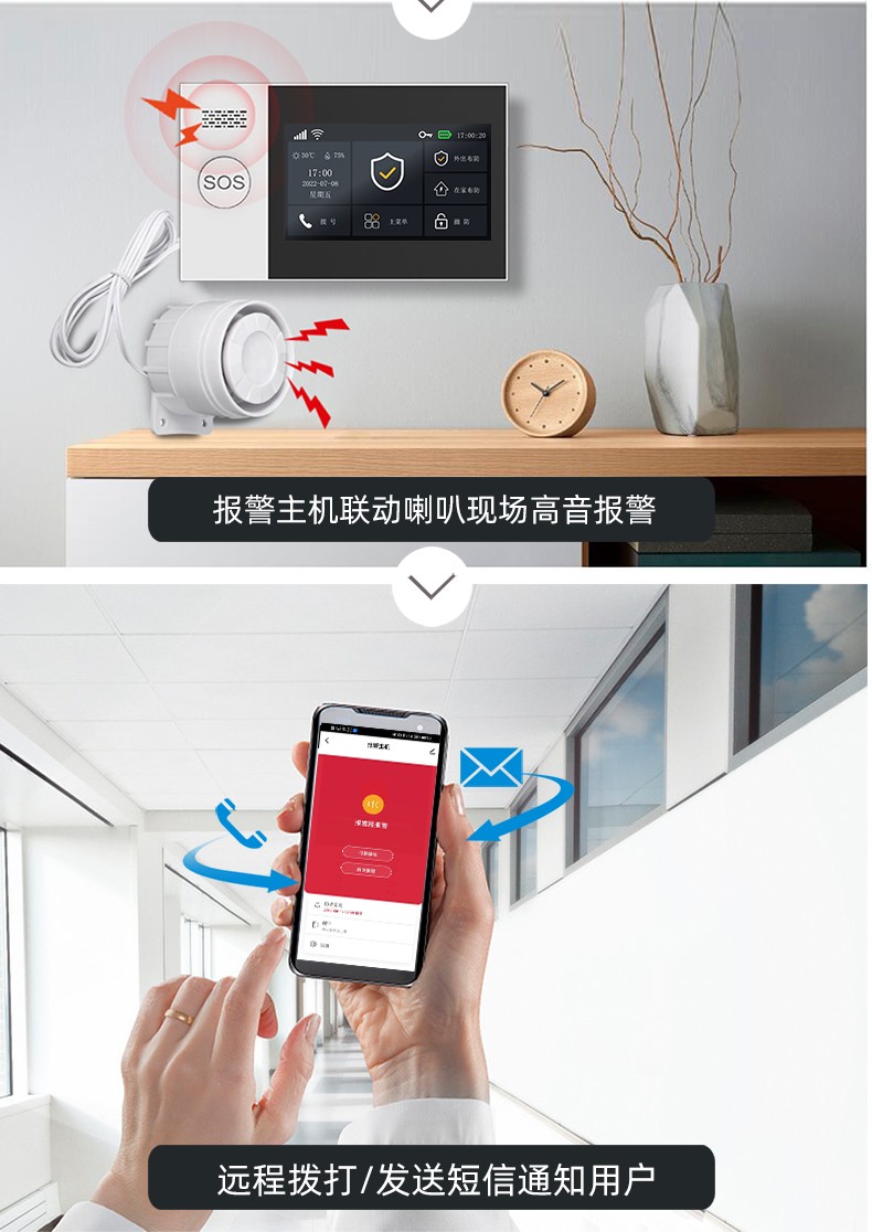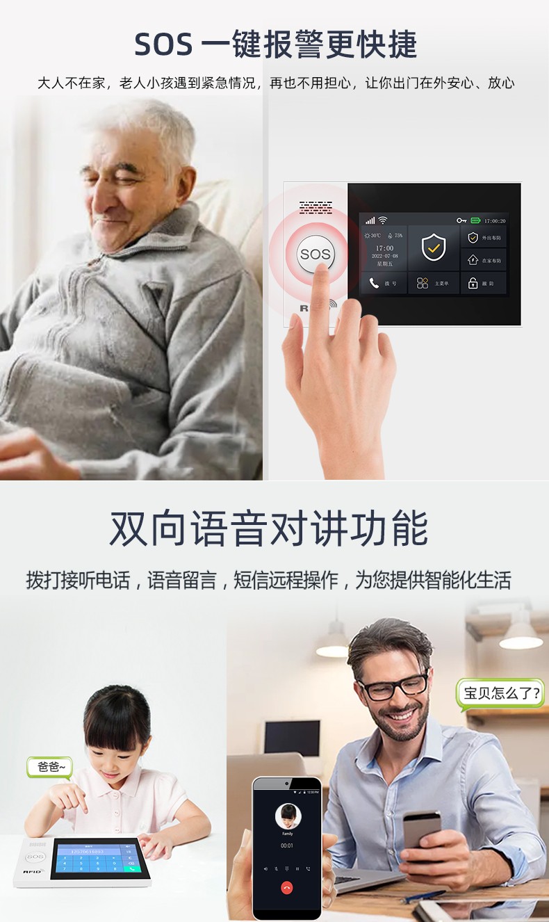 采用嵌入式操作系統(tǒng),ARM9 CPU高性能運行支持WIFI/GSM/4G/GPRS多種通信服務自帶語音提示功能,支持10個常用國家語言支持接入涂鴉云,Alexa智能語音控制,APP推送自帶高分貝警號,可選配太陽能戶外聲光警號內置門鈴功能,緊急求助功能