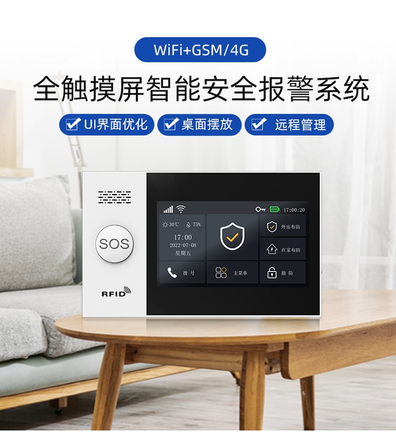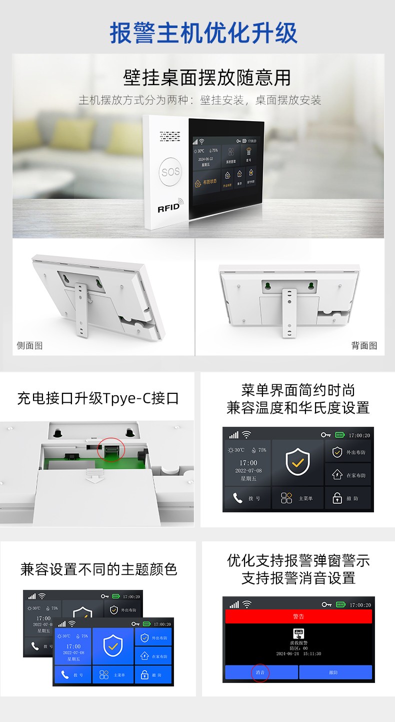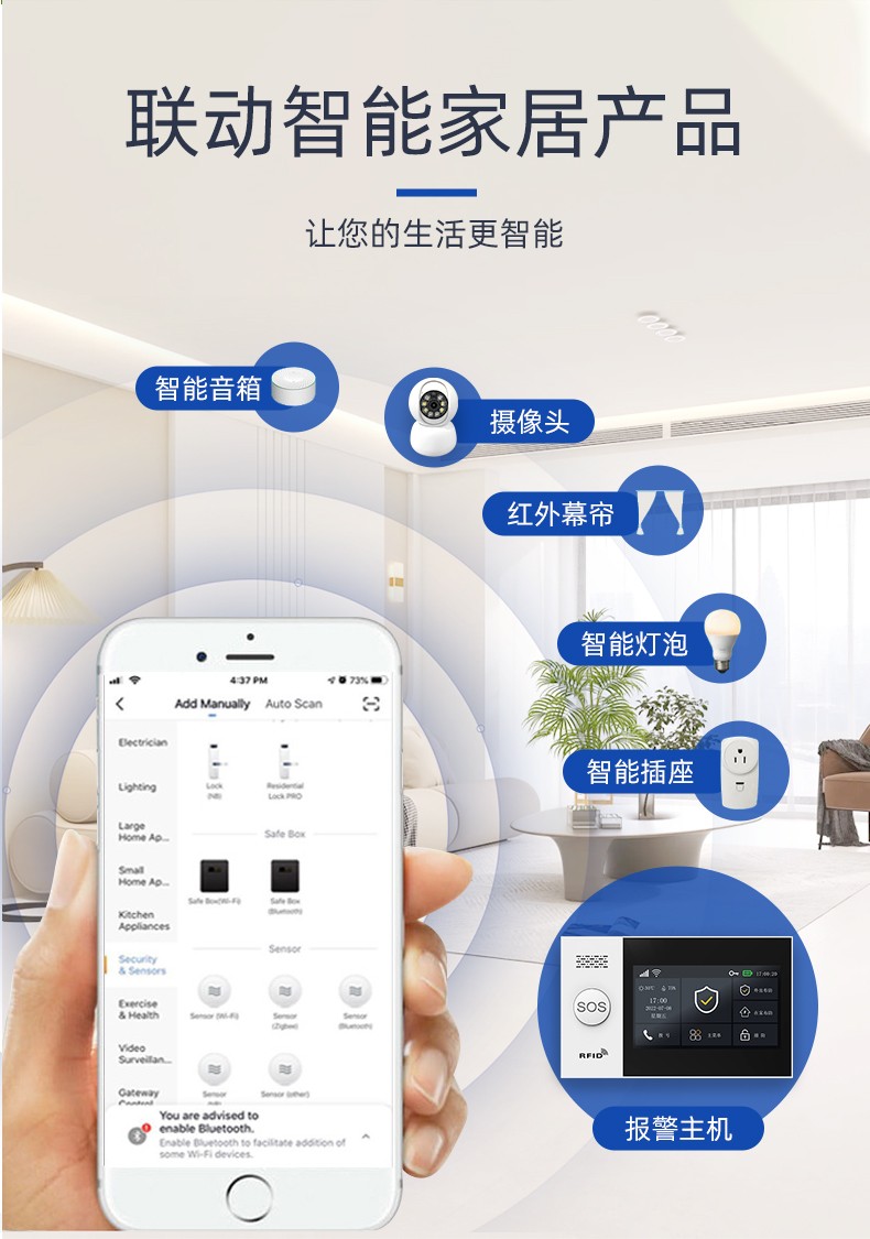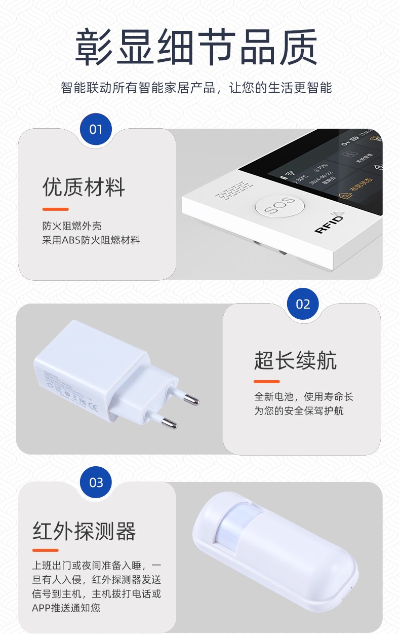 采用嵌入式操作系統(tǒng),ARM9 CPU高性能運行支持WIFI/GSM/4G/GPRS多種通信服務自帶語音提示功能,支持10個常用國家語言支持接入涂鴉云,Alexa智能語音控制,APP推送自帶高分貝警號,可選配太陽能戶外聲光警號內置門鈴功能,緊急求助功能