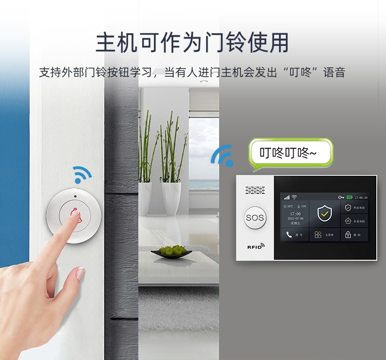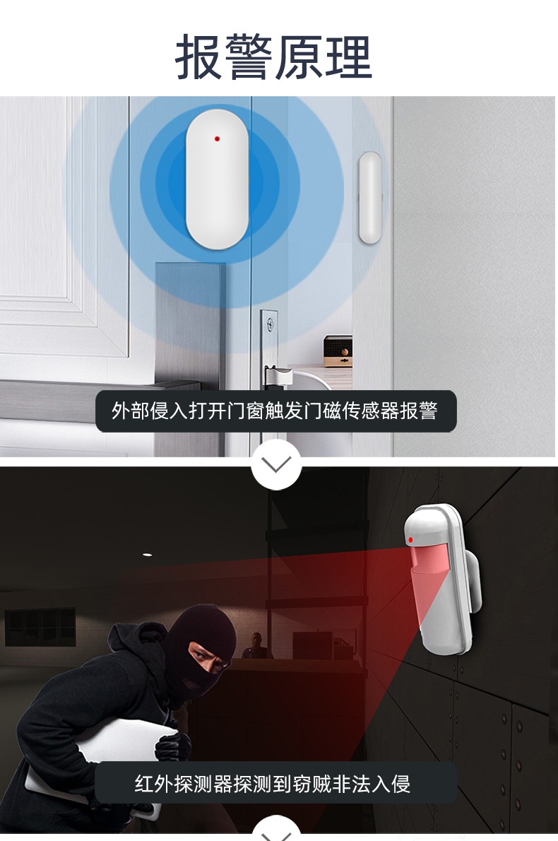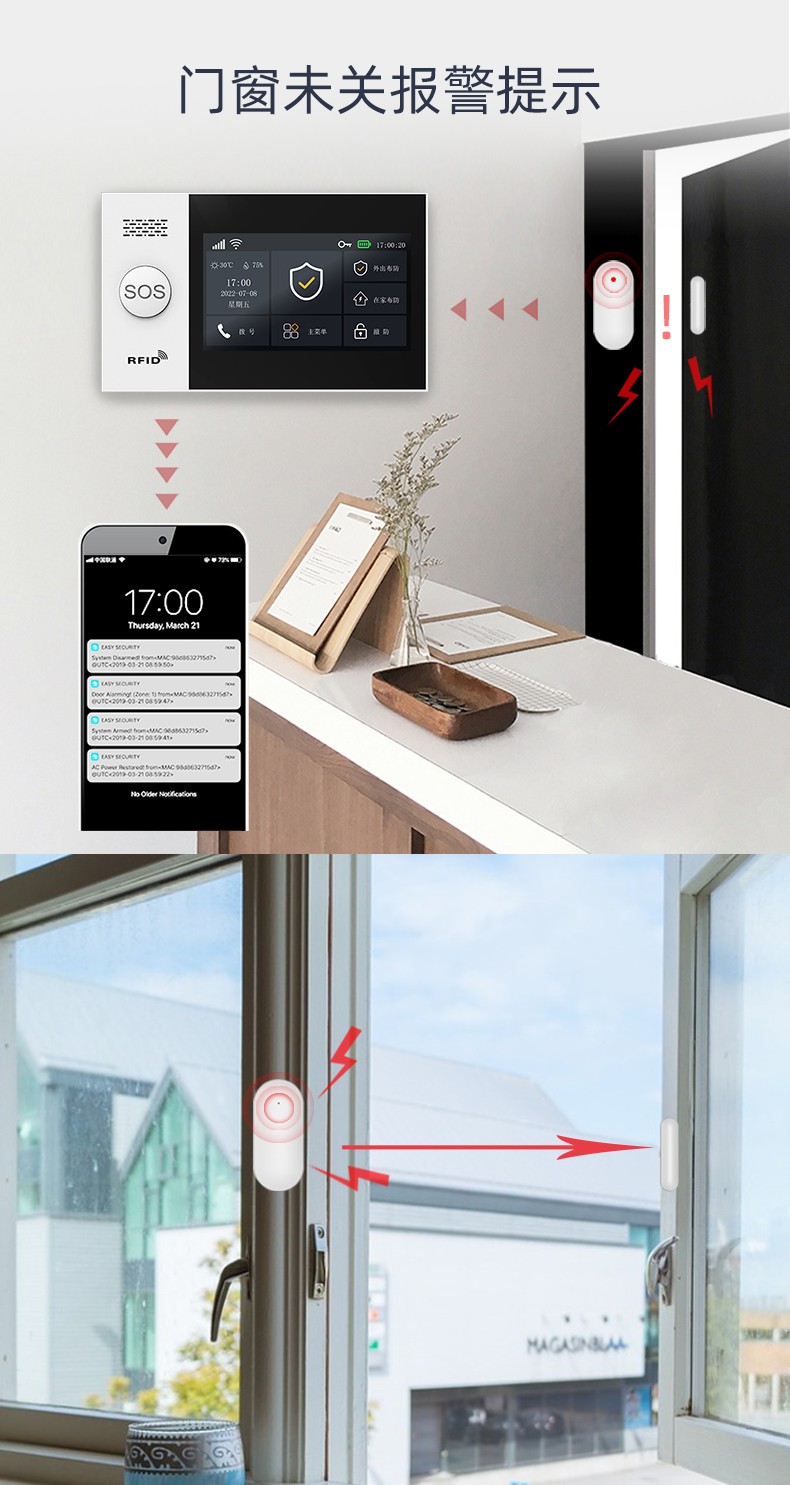 自帶防拆報警功能,布防門窗未關警示