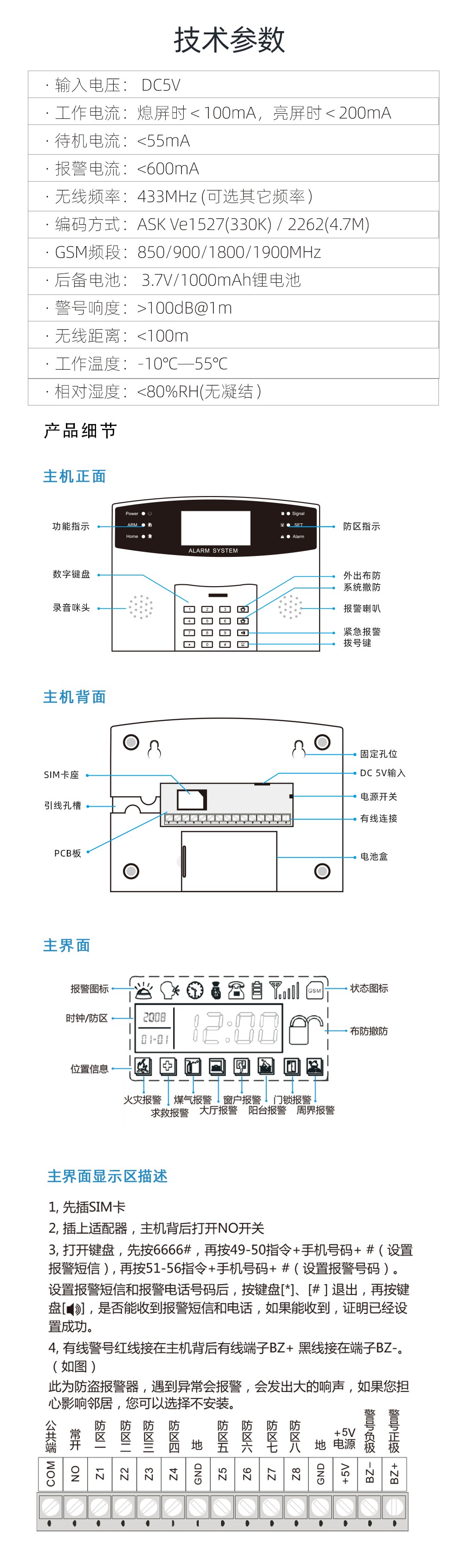 預(yù)設(shè)6組報(bào)警電話,主機(jī)自動撥打電話語音報(bào)警;