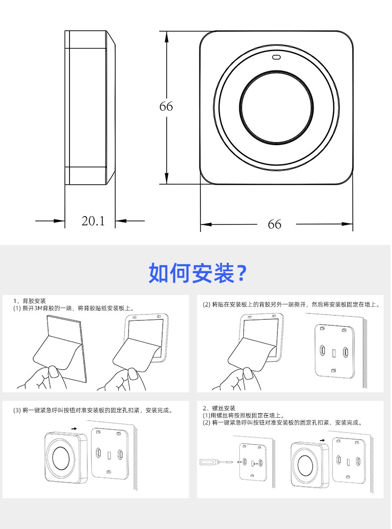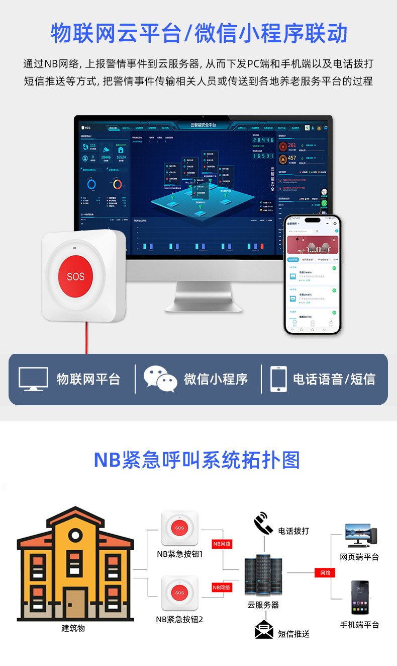 NB-lOT 一鍵緊急呼叫按鈕關(guān)愛家人安全,一鍵呼叫傳達(dá),安裝便捷,遠(yuǎn)程報警,多方式推送告警.